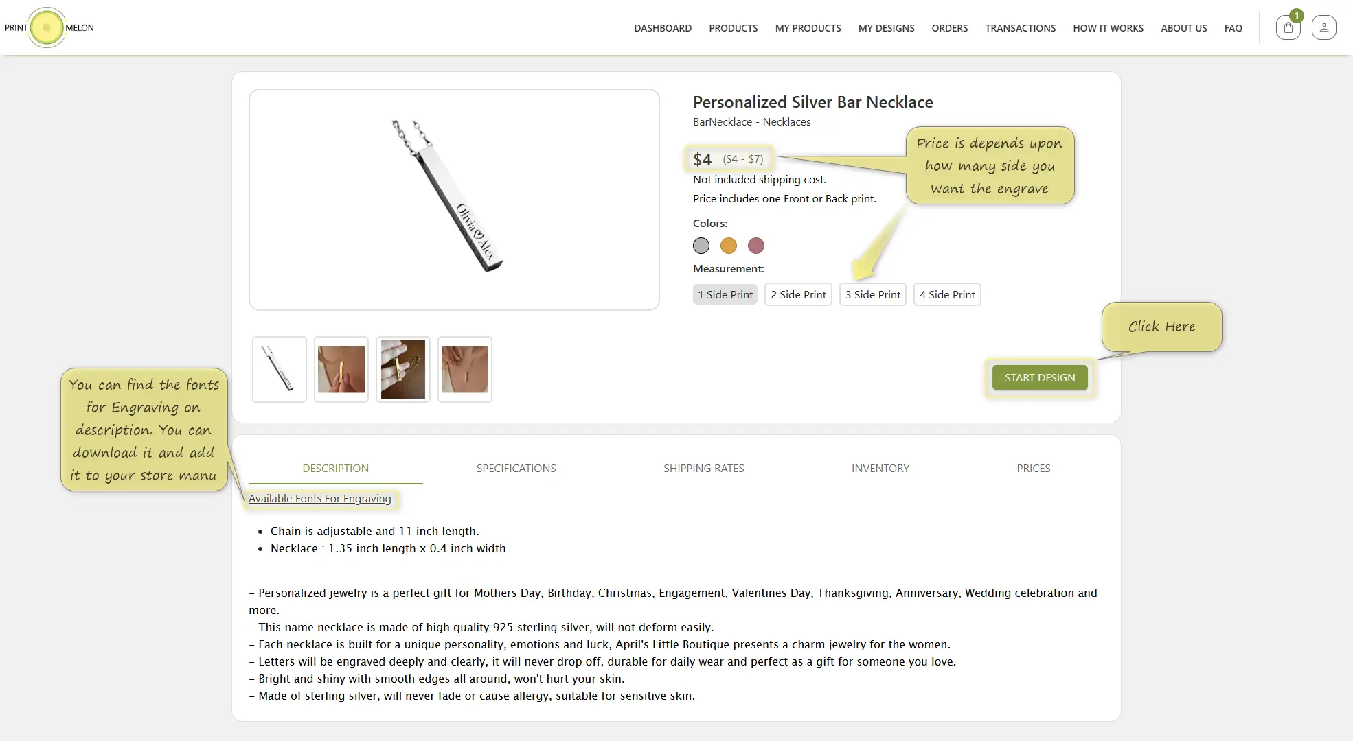 Do not forget to adjust your variant prices depending on the number of engravings.
