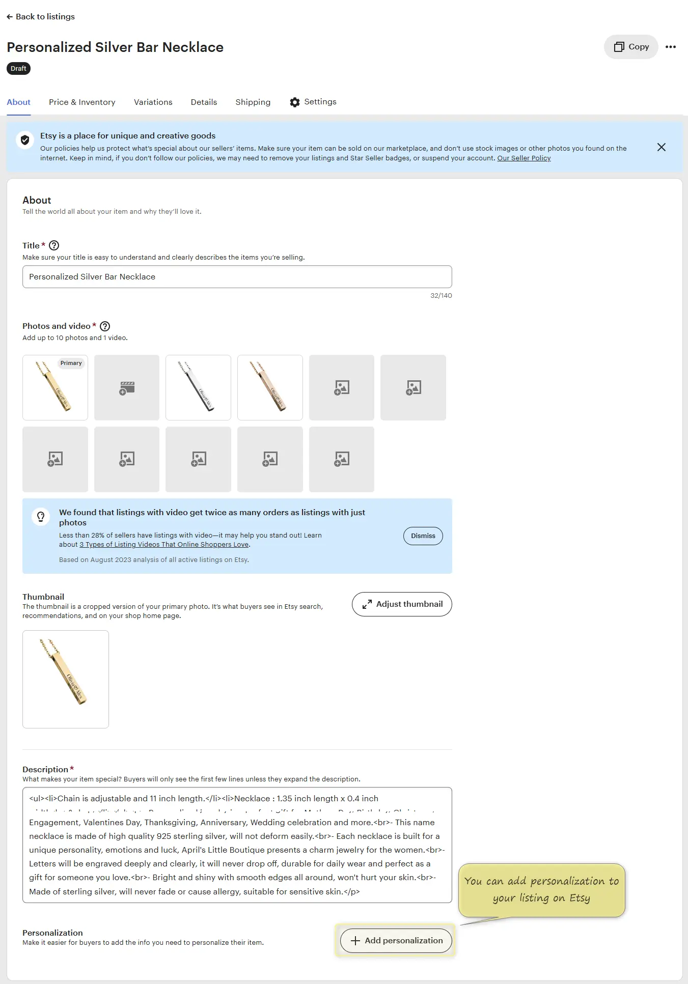 Add Personalization To Your Etsy Listing