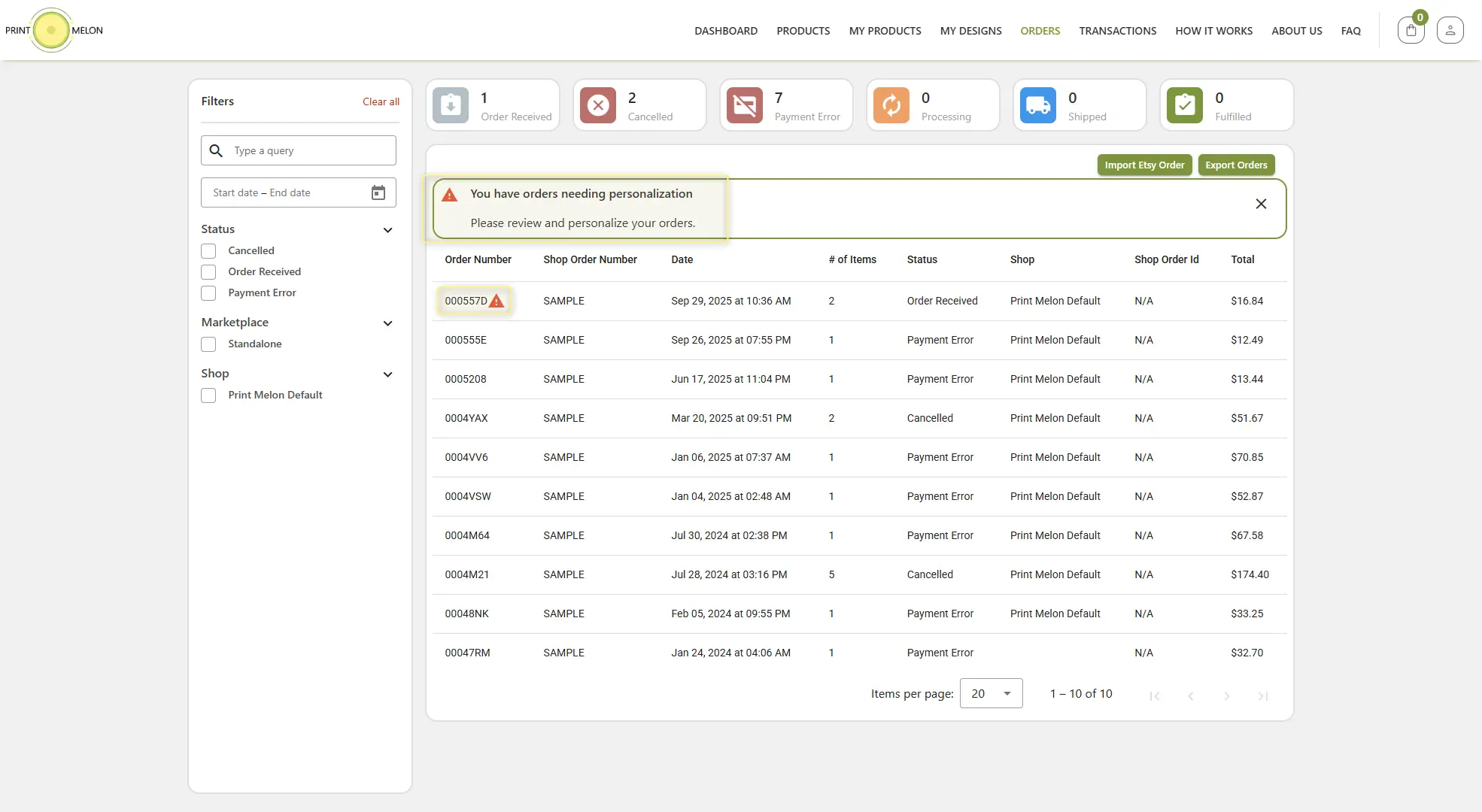 You will see a warning when we have received a personalizable product order from your store.