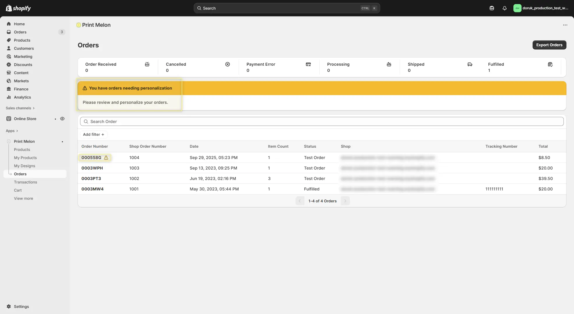 You will see a warning when we have received a personalizable product order from your store.